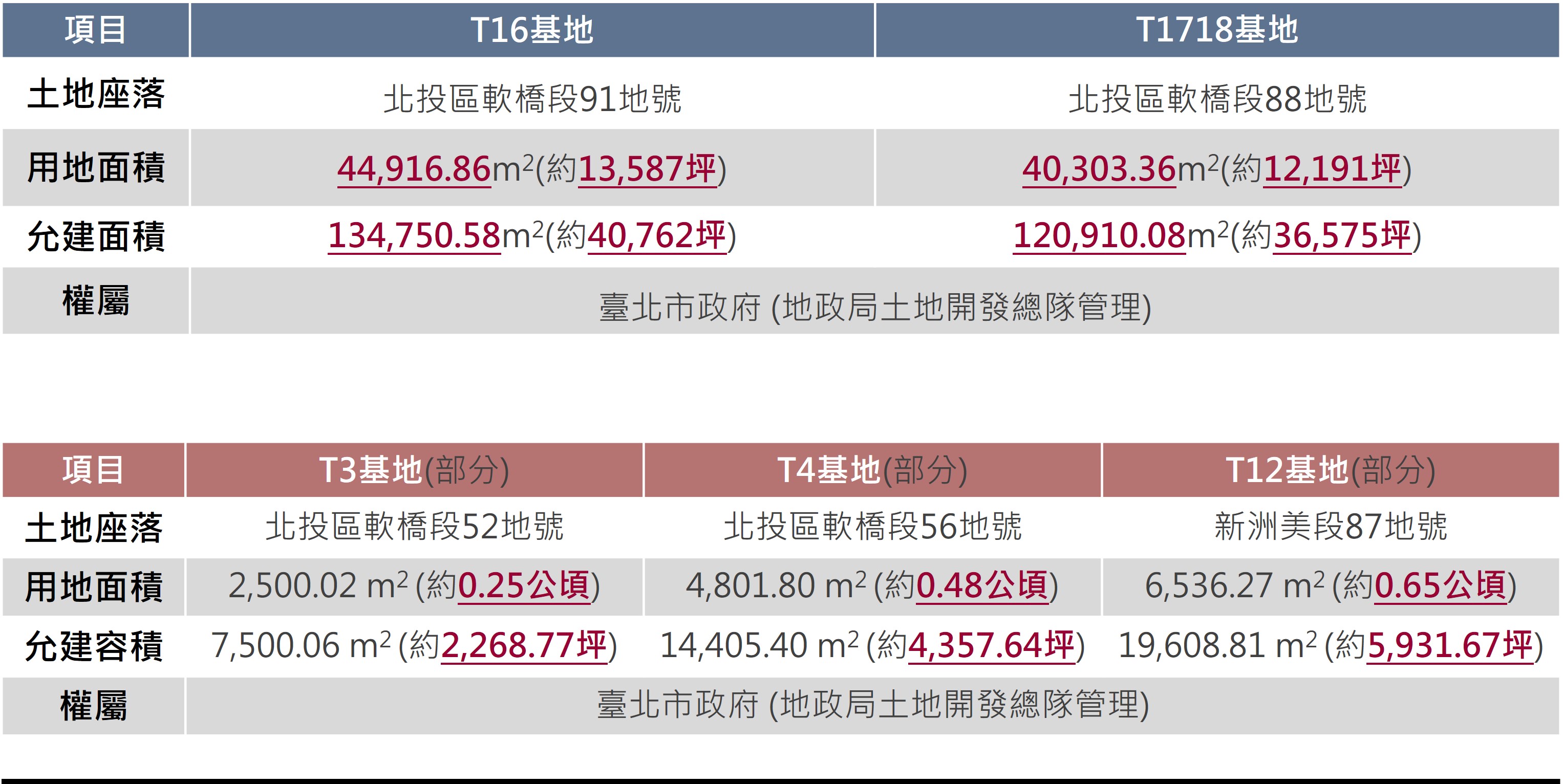 分為T16、T1718(面積合計約8.52公頃)及 T3、T4 和 T12,共 5 處基地。
