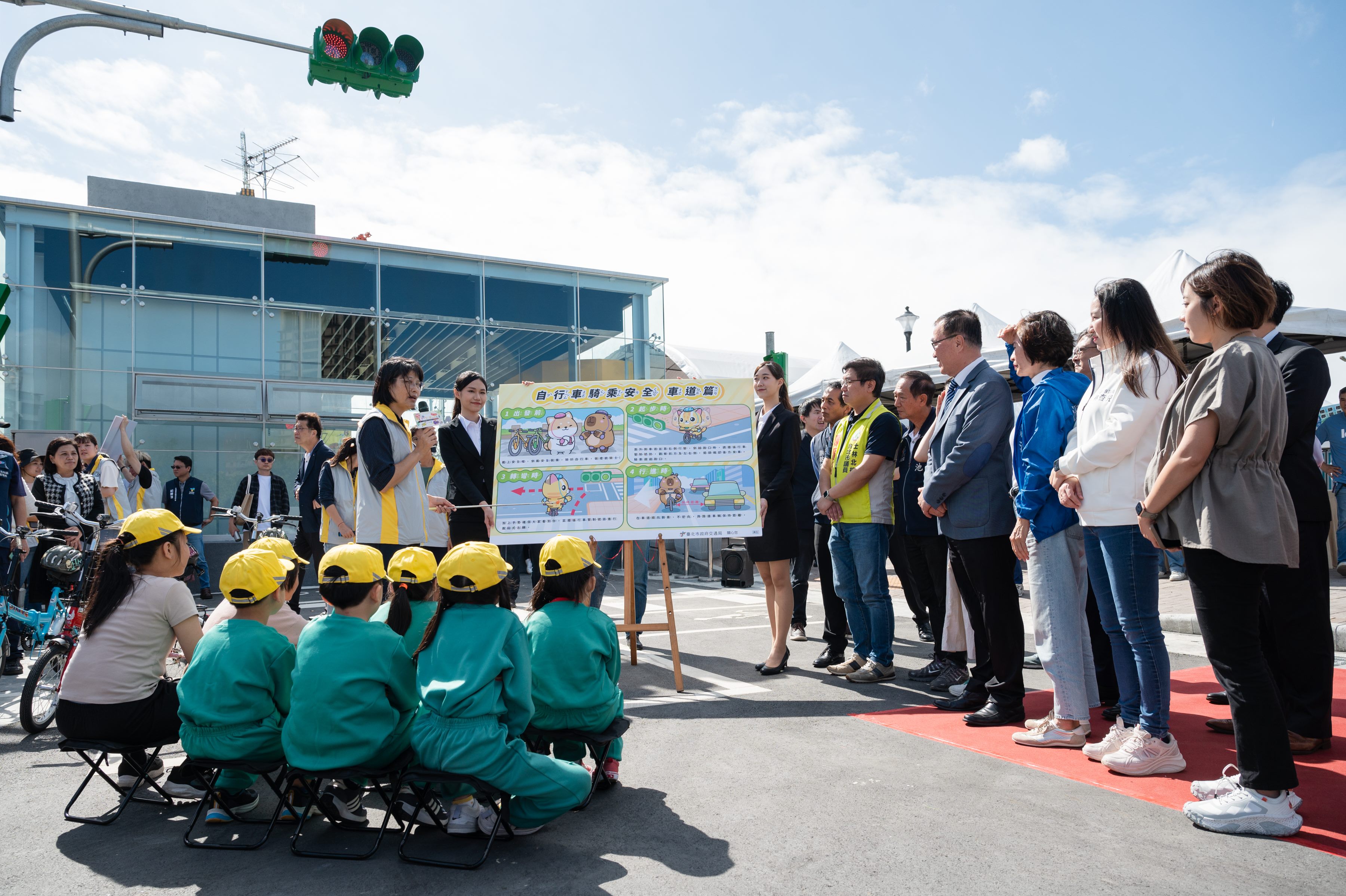 交通教學區共規劃五大主題關卡,包括「穿越路口這樣走」、「視野死角與內輪差」、「公車等待與招手」、「自行車人行道安全」及「自行車車道安全」,以實境體驗深化交通安全印象。截至目前,交通局已舉辦16場宣導活動,報名情況踴躍。