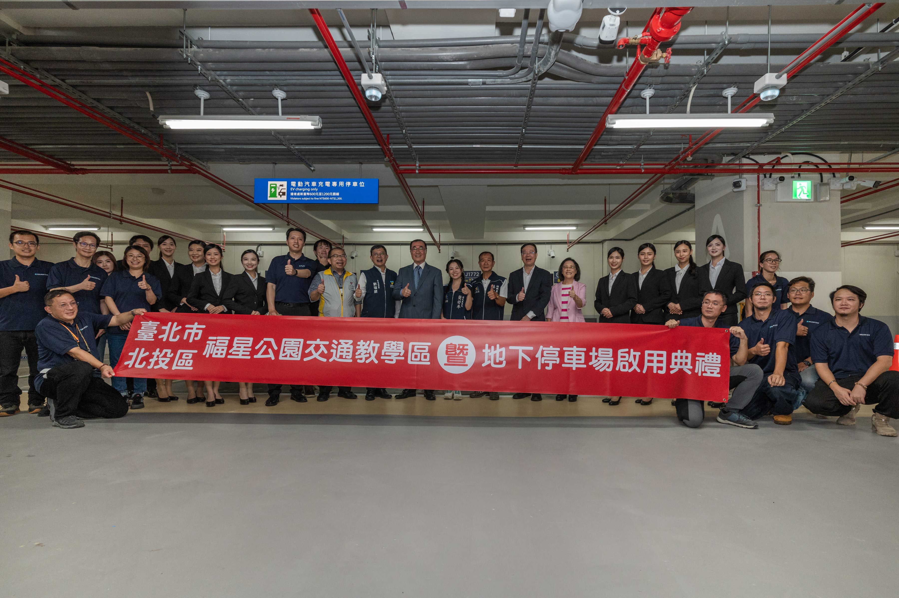 臺北市停車管理工程處(下稱停管處)表示,福星公園地下停車場採智慧、科技與環保設計理念,曾獲113年度空氣污染防治工地評鑑「特優」肯定,不僅能滿足地方停車需求,更與上方公園相輔相成,成為結合教育、休憩與服務的城市新地標,舒緩北投地區停車壓力。